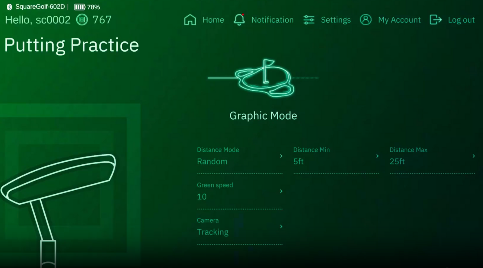 ✔Adjust the green speed from fast to slow, allowing you to simulate different course conditions.